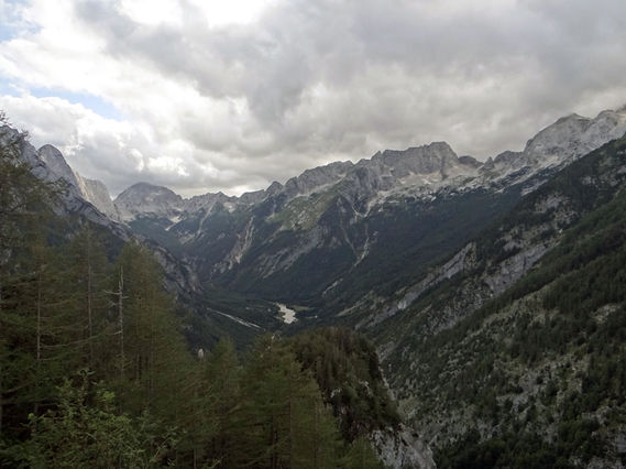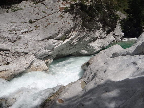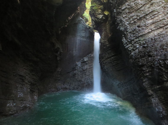 17.8.2014 smo se odpravili na nov izlet. Udeležba je bila slaba, saj smo bili le jaz in trije udeleženci. Je pa zato bilo vreme idealno, saj je bilo jasno, z zelo lepo vidljivostjo in ne prevroče. Malo pred 6. uro smo se odpravili na pot proti Novi Gorici in od tu naprej ob Soči, vse do Kanala ob Soči. Tu smo se ustavili in z mostu poslikali lepo modro reko, s katerega so nekaj ur kasneje skakali v vodo. Bilo je zelo hladno in tresoči smo se sprehodili do cerkve ter si od zunaj ogledali avtoštoparski muzej. Sprehodili smo se tudi do reke pod mostom. Z avtom smo pot nadaljevali proti Tolminu in se ustavili pri HE Ajba1, malo kasneje pa še pri posebni, zlovešči HE Doblar. Ko smo prišli do Tolminske kotline, se je sonce skrilo, saj se je malce nad dolino zadrževala megla. Iz Volč smo se z avtom povzpeli skozi meglo visoko nad dolino, na Kolovrat 1100 metrov visoko, kjer smo si ogledali muzej na prostem, iz 1. svetovne vojne. Razgled je bil na vrhove Krnske skupine in na meglo nad dolino Soče. V smeri Italije se je zelo daleč videlo in zlahka so se videli Dolomiti ter tudi morje. Ogledali smo si sistem tretje obrambne črte, poimenovane »linea d' armata«, ki je danes urejen v muzej na prostem. Tu so poveljniška in opazovalna mesta, mitralješki in topniški položaji, kaverne ter mreža strelskih jarkov. Skočili smo še na sosednji, razgledni grič, na mejnega z Italijo pa sem skočil sam. Od tu smo se odpravili nazaj v dolino v Kobarid. Najprej smo šli na pijačo in od tod do »razgledišča« na ta čas lepo, prazno in mrzlo reko Nadižo, kjer smo slikali reko in ob fotografiranju na naravnih lepotah preizkusili zoom. Vrnili smo se v Kobarid in se ustavili pri Hudičevem mostu, pod katerim teče smaragdna Soča. Malce naprej smo parkirali pred kampom in se čez viseč most povzpeli na drugo stran Soče, kjer smo se mimo dveh kratkih jam vzpeli do slapa Mali Kozjak in od tod v tesni soteski do slikovitega slapa Veliki Kozjak. Ves čas smo srečevali ljudi in zdelo se je, kot da gremo na Šmarno goro. Vrnili smo se k avtu in se vrnili v za ta dan že značilnem humorju na moj račun. Zopet smo se vrnili v Kobarid in obiskali italijansko kostnico, posvečeno padlim italijanskim vojakom v 1. svetovni vojni. Gre za veliko zadevo, ki se skupaj s cerkvijo na griču dviga nad Kobaridom. Od tu smo se usmerili proti Bovcu in se v vasi Žaga odpravili na kosilo. Pred njim sem skočil po stezi ob reki Učji, kamor sem nato po njej povabil vse. Stezica je vodila do brvi čez sotesko reke Učje, do hidrološke postaje, kjer smo se spustili do korit smaragdne reke in se na zaobljeno oblikovanih skalah ob zelenomodri reki slikali. Vrnili smo se do gostilne, kjer smo jedli in se odpravili le malce naprej do parkirišča ob Boki. Po neodločnosti ali bomo ostali na cesti ali se bomo povzpeli do razgledišča na mogočen slap Soka, je padla srednja možnost. Vzpon ob strugi, kjer bi naredili manj višinske razlike in se slapu vseeno približali. Po skakanju čez skale smo se toliko približali slapu, da smo ga lahko zagledali za ovinkom. Vrnili smo se k izhodišču in se zapeljali do umetnega jezera Plužna, ki leži ob istoimenski vasi. Od tu smo imeli tudi povsem blizu do izvira Giljuna, kjer ima voda ob izviru le dobrih 5 stopinj in kjer nas je presenetil zelo debel mah. Vrnili smo se v Bovec in se odpravili pogledat Velika korita reke Soče. Po nekaj težavah s parkiranjem nas je pogled na iztek korit hipnotiziral, da je obstaja samo ena smer. Ob izlitju čudežne smaragdne Soče iz Velikih korit se je sončila in lepote reke občudovala cela gruča ljudi. Dve punci pa sta celo zaplavali. Z udeležencem sva zmočila noge, a za kaj več, je 9 stopinj premalo. Pot smo nadaljevali do soteske Mlinarice, ki ni spadala med boljše točke izleta. Na hitro smo se ustavili še na Šupci – vrhu ob vršiški cesti, od koder v pol minute hoje stopiš do solidnega lesenega razgledišča na Vršič, dolino Zadnje Trente in Jalovec.