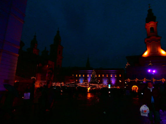 Ko smo napolnili svoje želodčke, je bil že skrajni čas da odidemo v Salzburg saj se je že začelo mračiti pa tudi občasno je kapljalo. V mestu smo parkirali ob reki dokaj blizu centra, do koder smo se odpravili peš. Center krasijo mogočne cerkve in lepo urejeni trgi, ki so že bili božično okrašeni. Po še enemu kuhanemu vinu pri drsališču na trgu Residenz platz-u smo se odpravili mimo številnih stojnic s kopico vseh mogočih lepih spominkov, ki jih je toliko, da je konkurenca izjemna. Po ozkih uličicah smo hodili do novega in novega trga, ki je imel vsak svojo cerkev. Gneči primerno hitro smo se premikali, ogledovali spominke in debatirali. Tudi še kak kozarček se je popilo. Od samih znamenitosti je največ pozornosti pritegnil zelo mogočen grad Monchsberg, za obisk katerega je bilo prepozno. Ob 19. uri smo se odpravili iz centra in se odpeljali domov. Pred karavanškim predorom smo še stali pol ure.