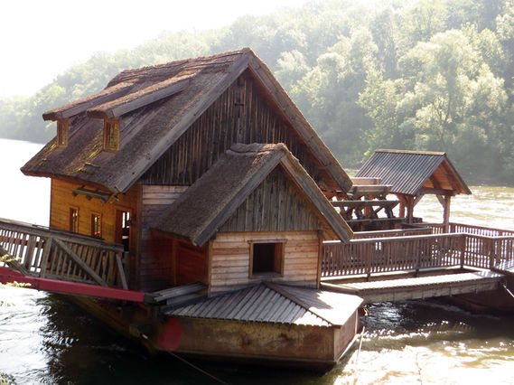 Do druge točke smo se odpravili peš in sicer do plavajočega mlina z imenom Mühlenhof. Do mlina se pride mimo zelo zanimivega kamping središča in se nadaljuje po urejeni gozdni poti, vse do reke Mure, je pa približno 10 minut hoje. Naj omenim, da je bilo konec 18. stoletja 69 plavajočih mlinov, leta 1925 pa naj bi bilo evidentiranih 93 lastnikov plavajočih mlinov. Danes se jih je ohranilo zelo malo. Ta mlin si lahko ogledate tudi v notranjosti (cena 2 EUR po glavi). Zraven mlina se nahaja tudi gostilna, kjer lahko malo prigriznete, mimo pa teče sprehajalna pot, kjer se ob reki Muri lahko tudi sprehajate.