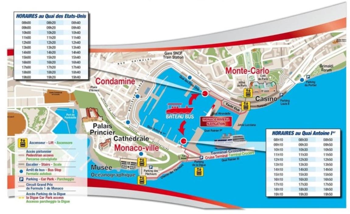 Električni avtobusni čoln "Camille" omogoča prečkanje pristanišča direktno od Monaka do Ville ali pa do igralnice med 8.00 in 19:50 uro. Celotno leto obratuje pod vodstvom Monaco Riviera Navigation, ki letno prepelje več kot 110.000 potnikov in izvede 72 voženj na dan.